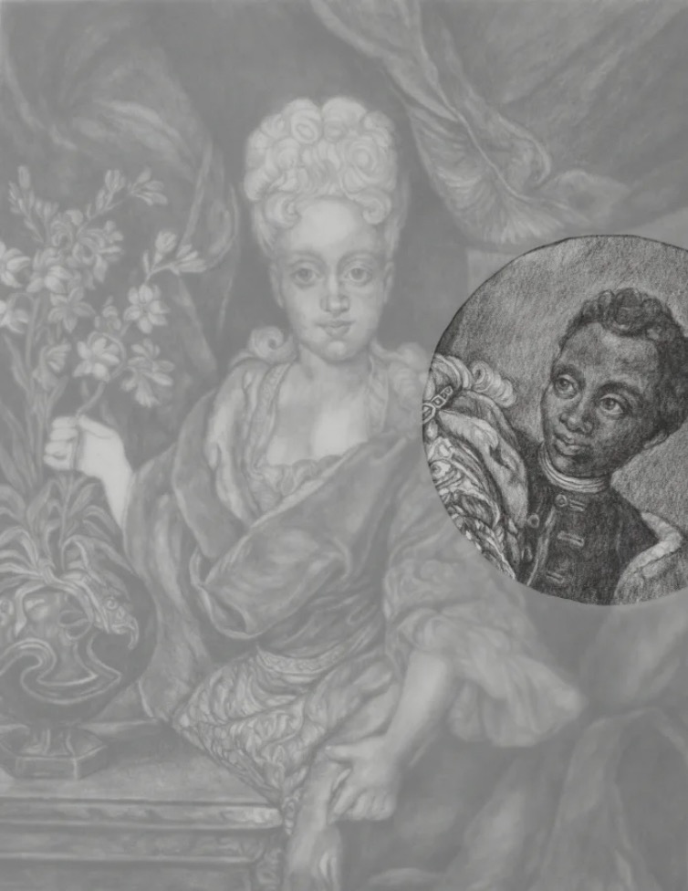 Fig. 3 Jacques-André Portail (1695–1759), Jeune fille dessinant, black chalk, sanguine and blue pastel framing, private collection (detail).