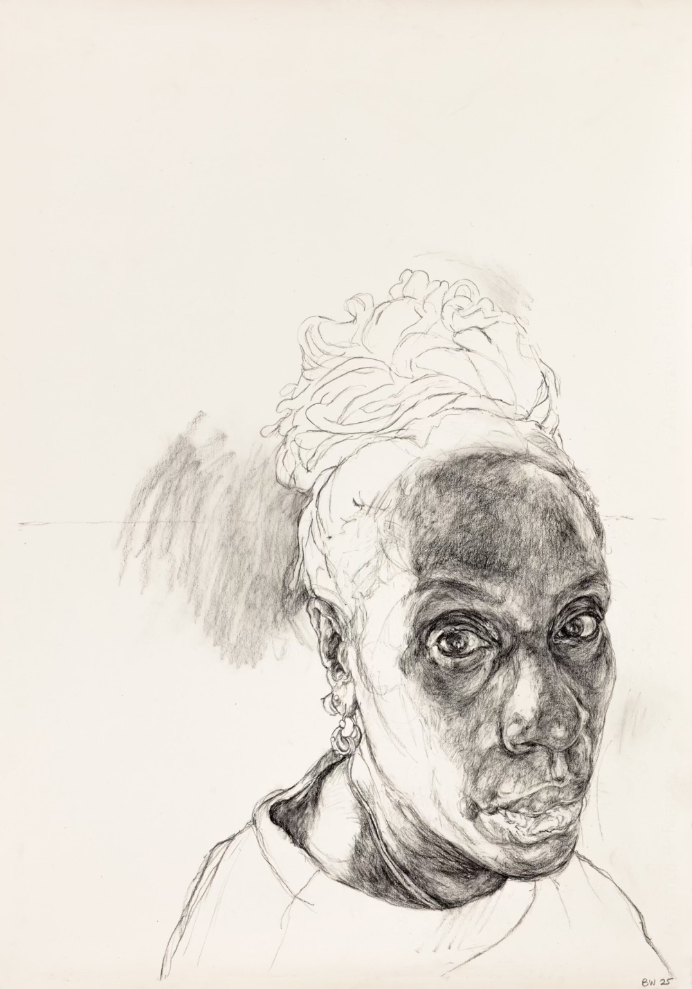 Figure 3: Barbara Walker, Self Portrait V (Venice), 2025. Conté and charcoal on paper, 100.3 x 70.1 cm. Katrin Bellinger Collection inv. 2025-030.