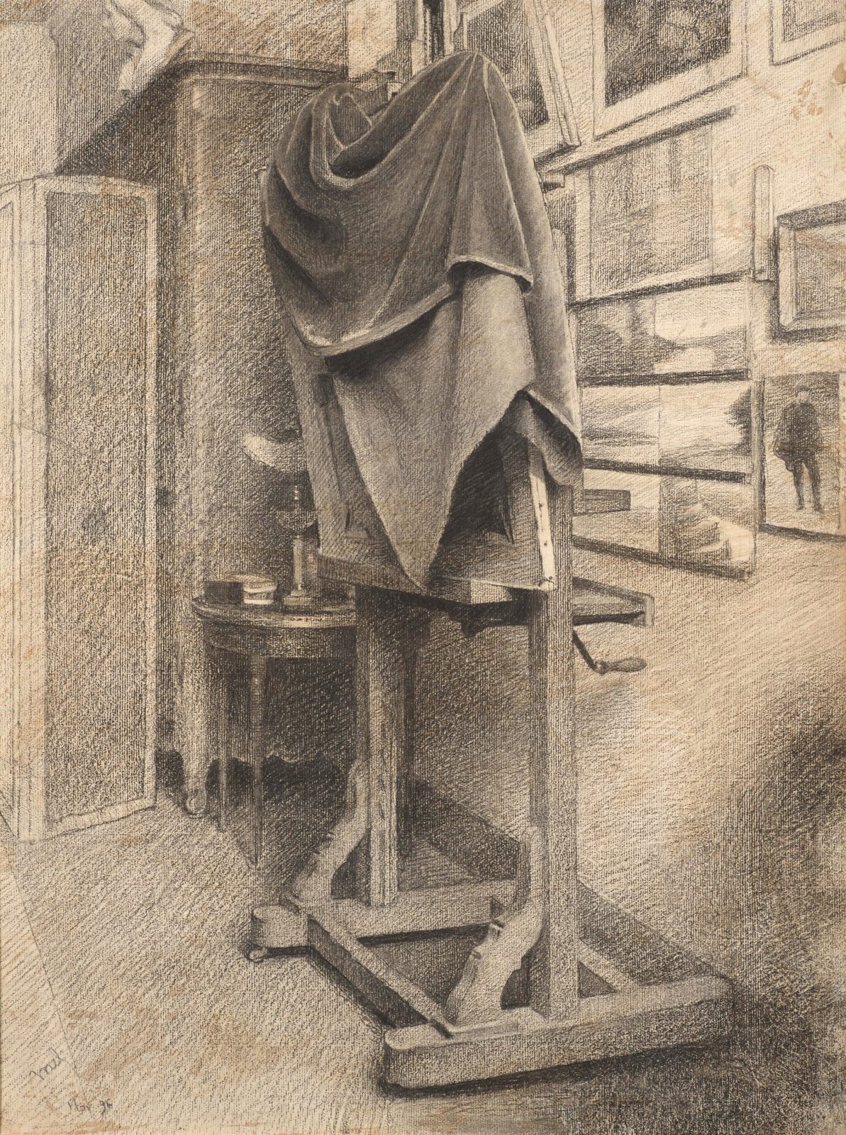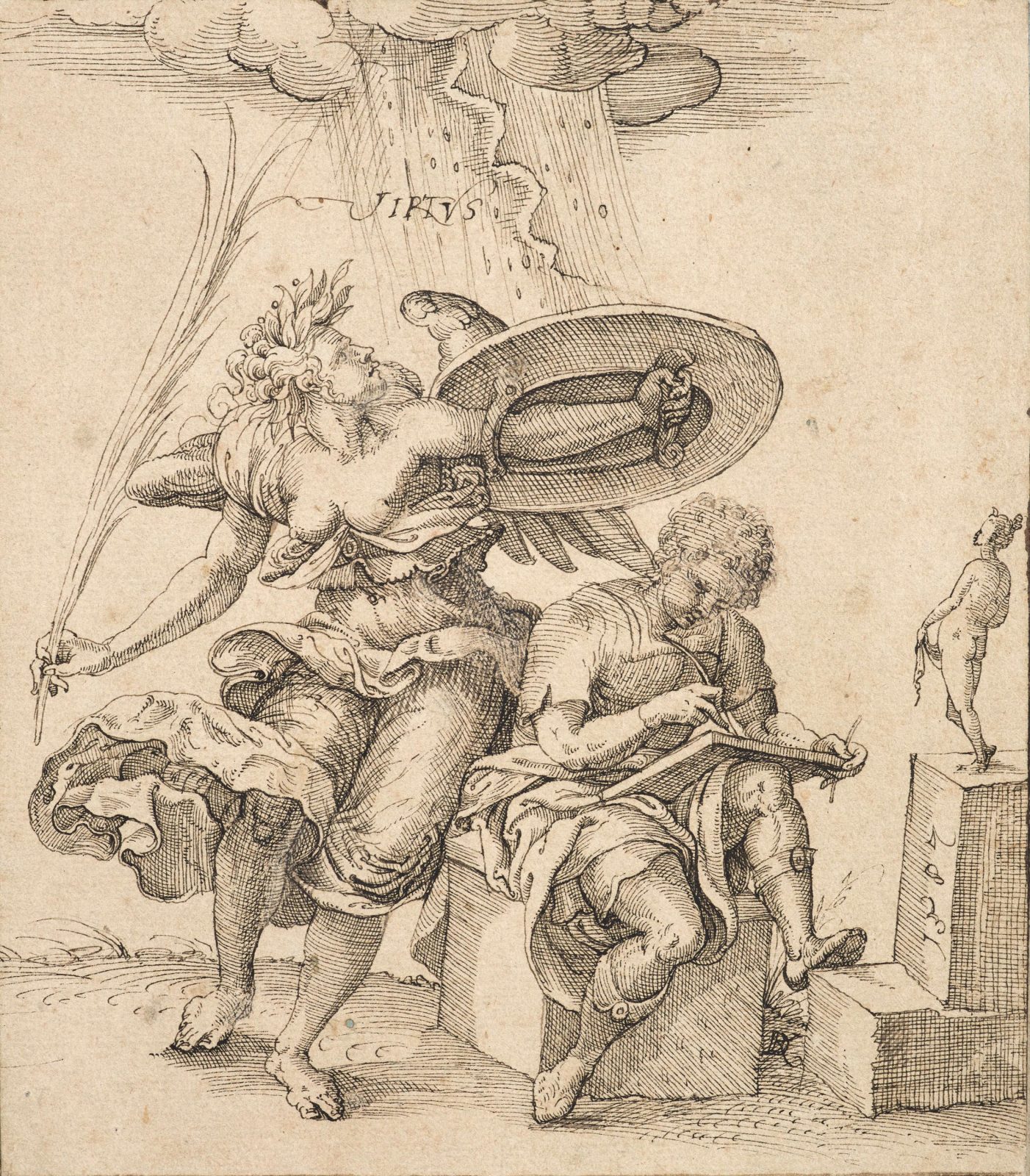 This trans-historical exhibition was held in The Gilbert and Ildiko Butler Drawings Gallery at The Courtauld Gallery (3 May – 15 July 2018). Selected principally from the Katrin Bellinger Collection, the display spanned from the 16th to the 20th centuries and focused on representations of studios—symbolic, actual and religious—as well as artists’ depictions of themselves or others at work. Art historians have interpreted these themes variously as a means of elevating the social and economic status of artists; of illustrating the marriage of intellectual knowledge and practical skill proposed by academic theorists; or as sophisticated allegories of the philosophical significance of visual art. Even at the most pragmatic level of recording the clutter of the everyday studio, drawing human models or antique casts in an academy, or sketching in a landscape, works with these subjects are imbued with layers of meaning.